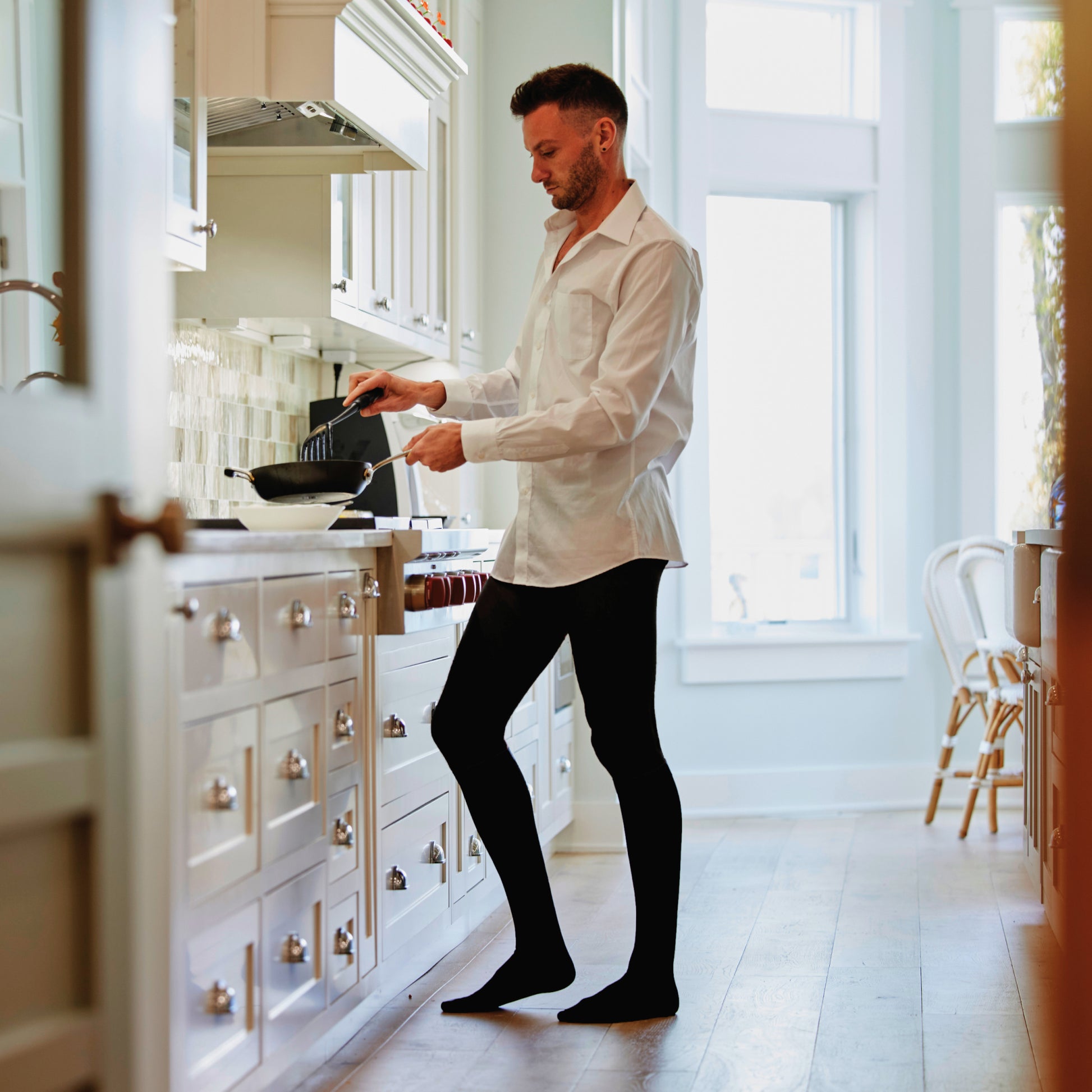 - Comfortable waistband provides additional support without causing discomfort. Pantyhose feature a unique brief-type top with a convenient fly opening, specifically designed for men. This thoughtful addition enhances comfort and convenience during use.