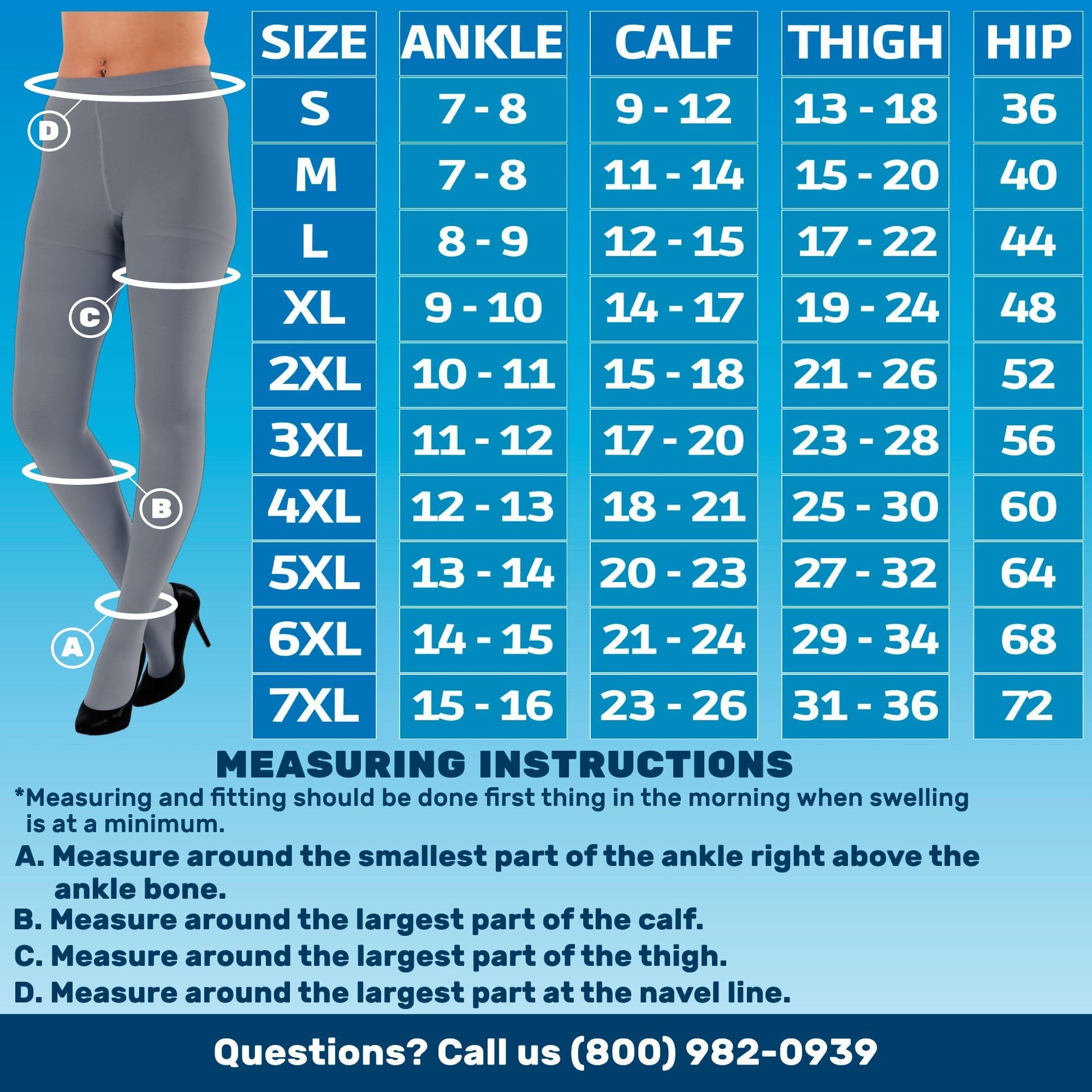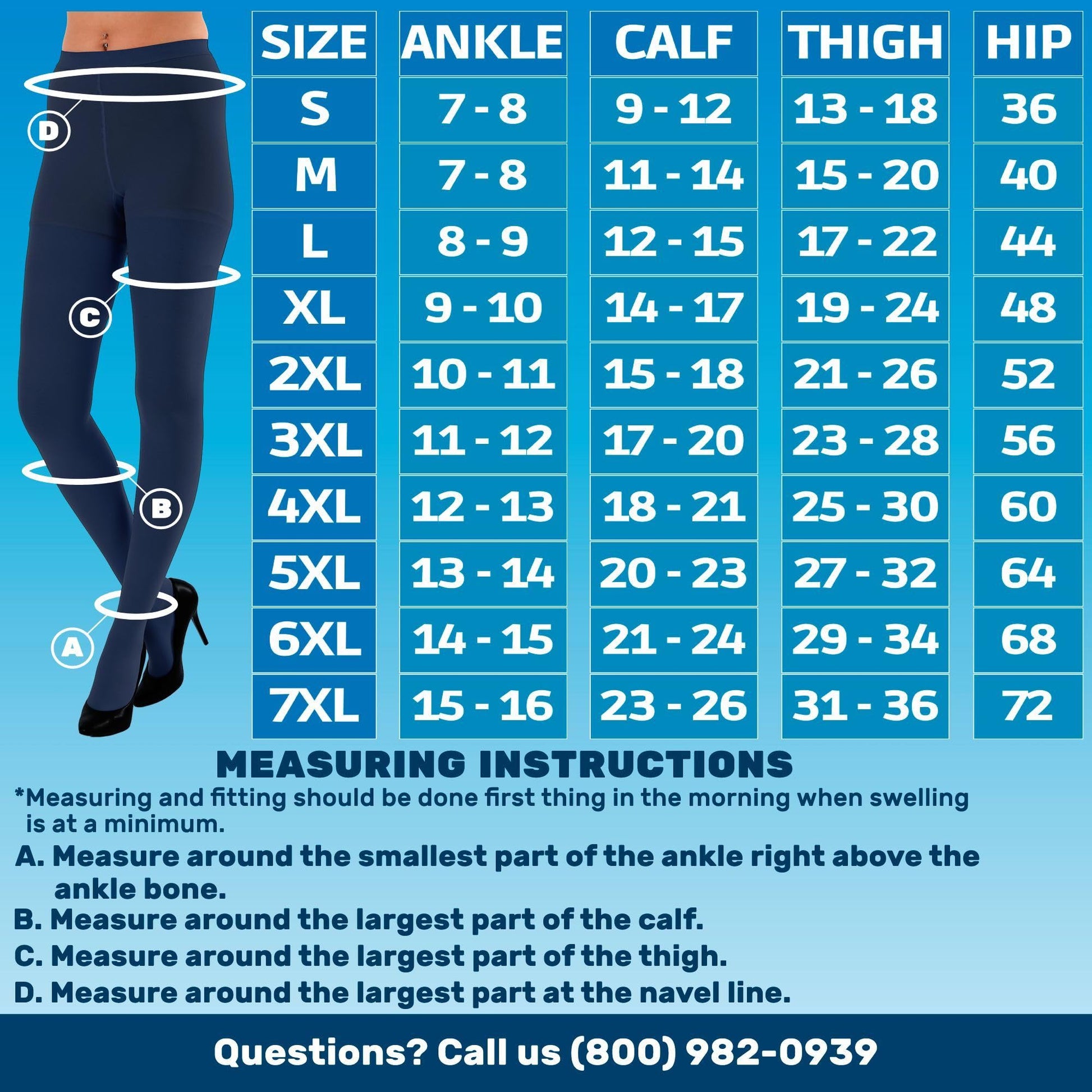 • Offers plus-size options, ensuring size-inclusivity and providing medical compression support for extra-wide sizes. These pantyhose provide firm support with a compression rating of 20-30mmHg. Ideal for individuals with moderate to severe edema, varicose veins, venous ulcers, or post-surgical recovery, they effectively reduce swelling, relieve leg pain, and prevent venous ulcers.