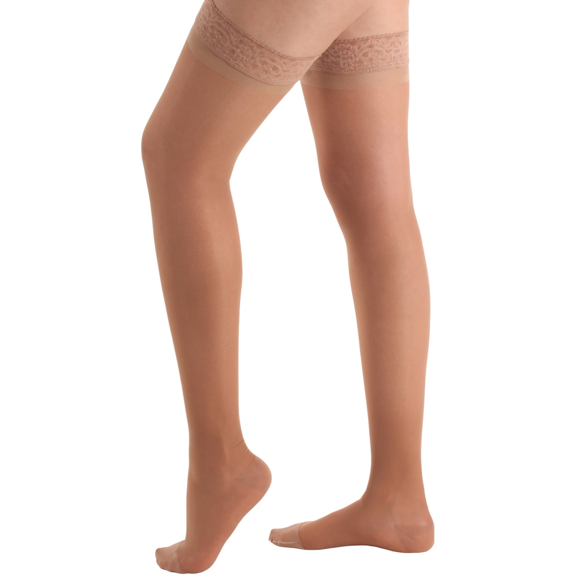 Absolute Support Sheer Best Medical Grade Thigh High Compression Stockings 15-20 mmHg with Lace Top (Model Number: A102).