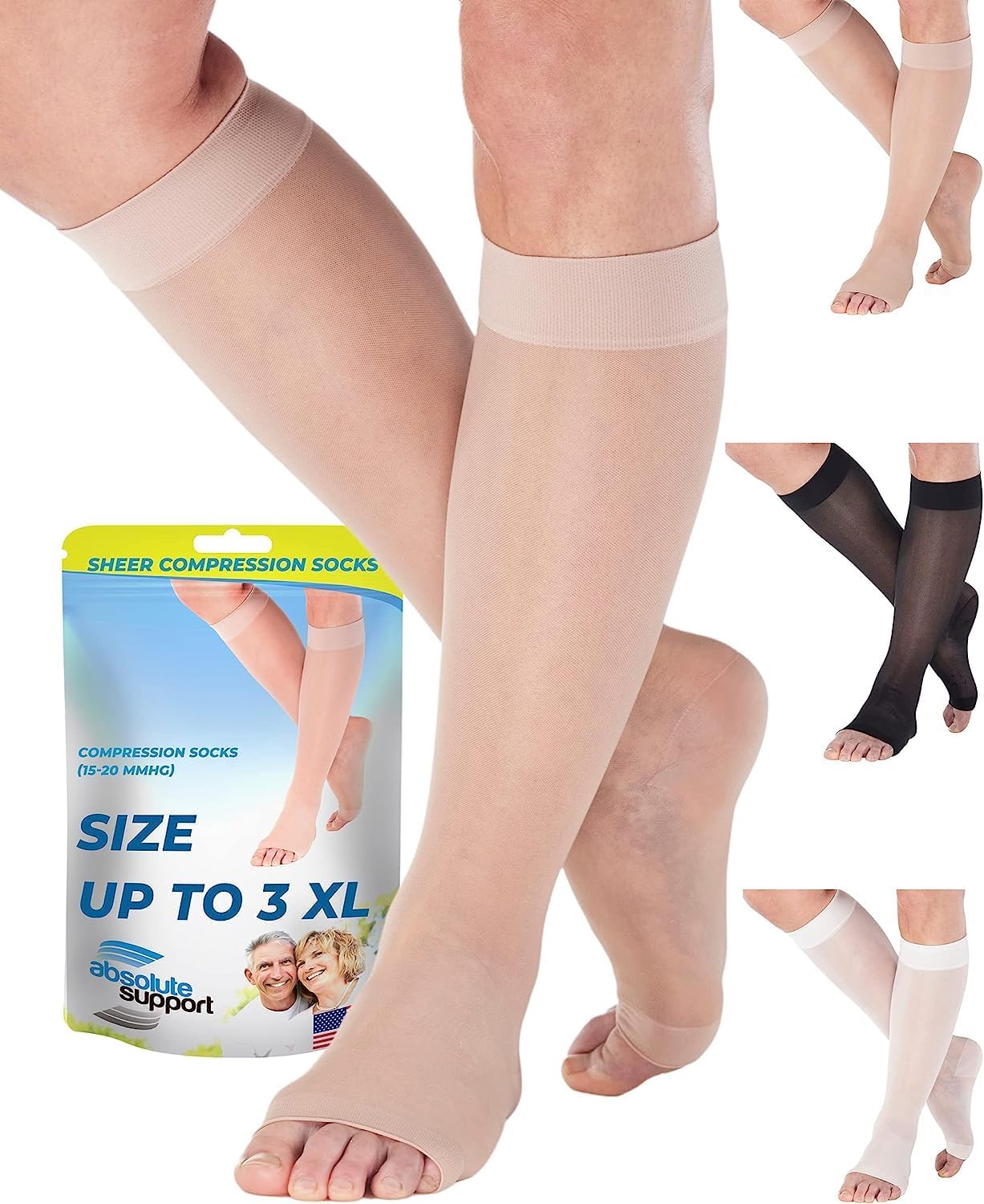 Absolute Support Made in USA - Sheer Compression Socks for Women Circulation 15-20 mmHg with Open Toe are designed to provide exceptional support and comfort for women.