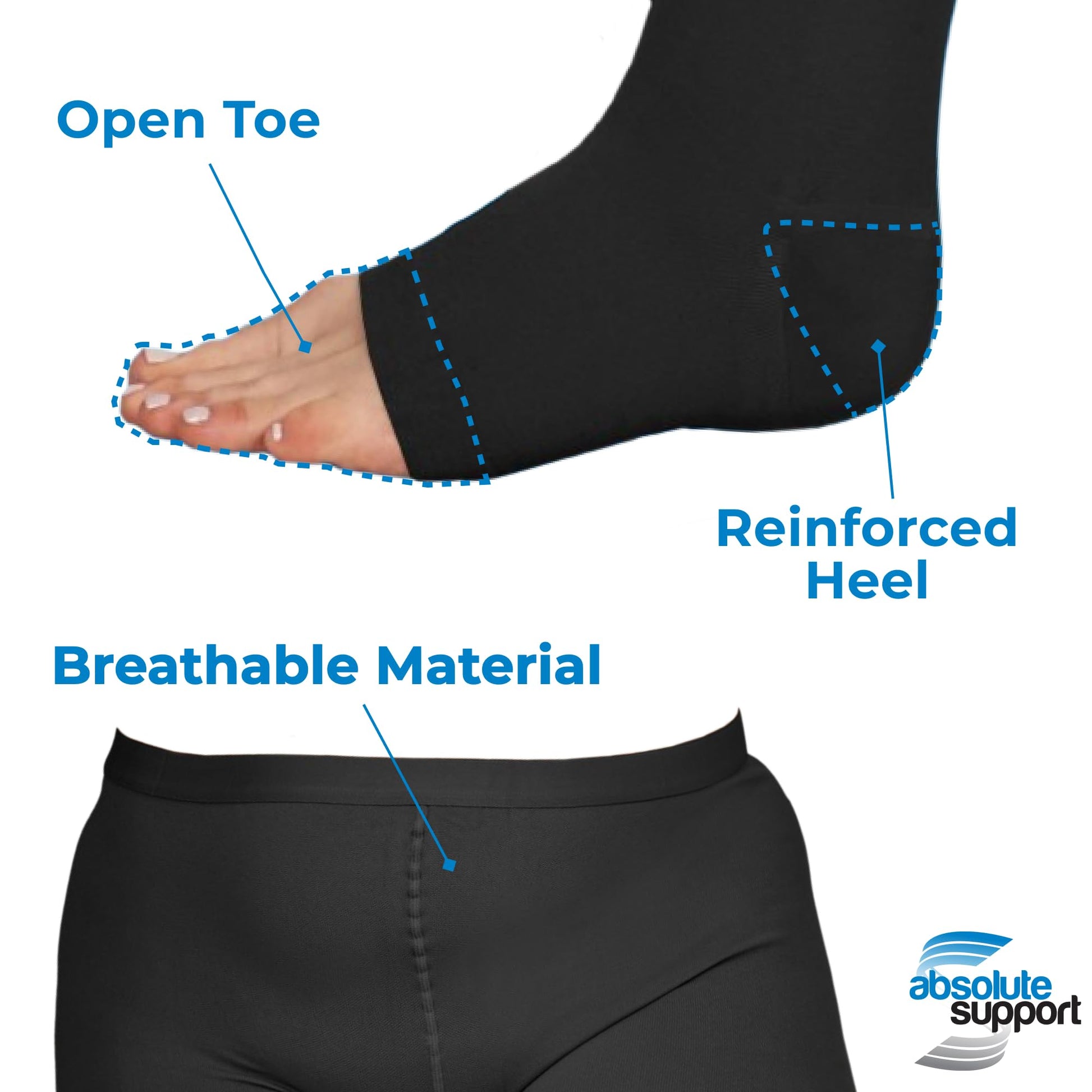 Absolute Support Women’s 20–30mmHg Full-Length Compression Pantyhose are medically designed to promote healthy circulation, relieve discomfort associated with varicose veins, swelling, and leg fatigue, and provide all-day comfort. With a therapeutic 20–30 mmHg graduated compression, these pantyhose gently support your legs from ankle to waist to enhance venous return and reduce swelling caused by prolonged standing or sitting.