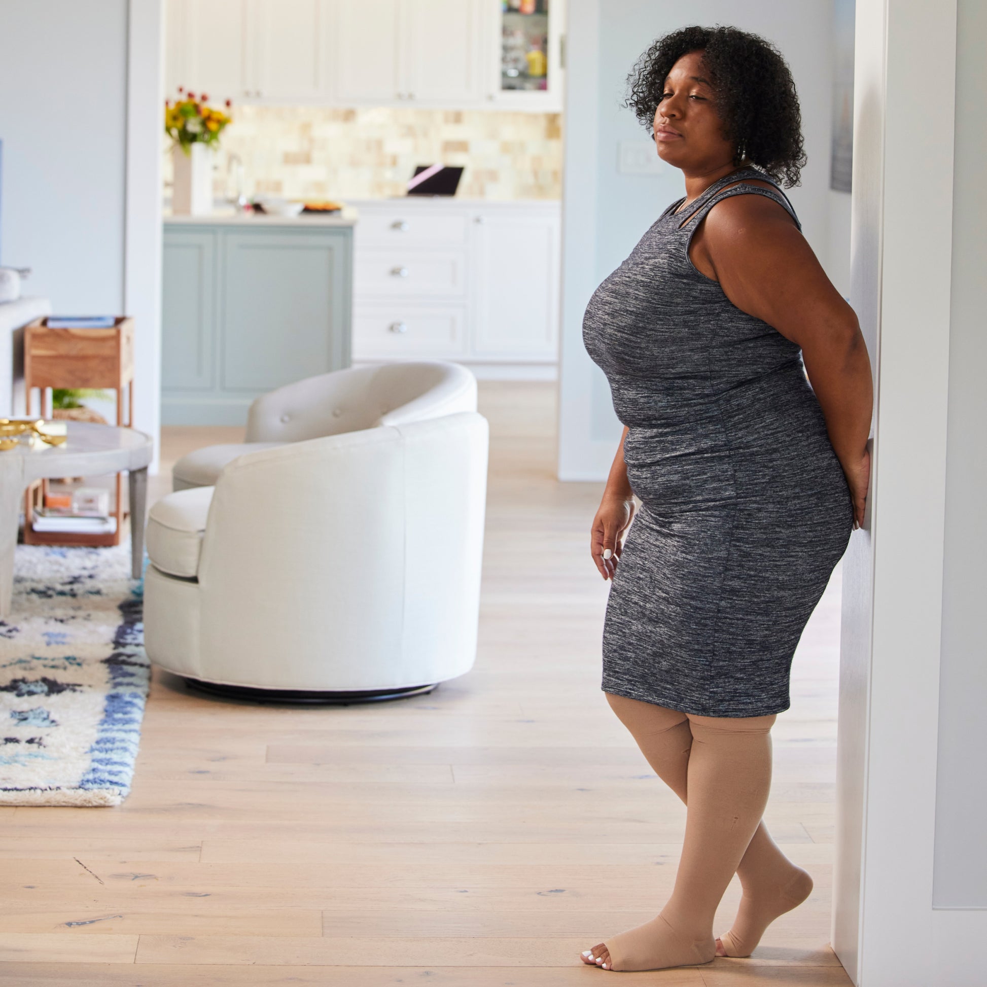 - Enhanced Comfort & Improved Appearance of Visible Veins: Our Plus Size Footless Thigh Highs Stockings offer a comfortable fit designed specifically for plus size women. The gentle compression can help improve circulation and reduce swelling, which may also improve the appearance of visible and reticular veins.