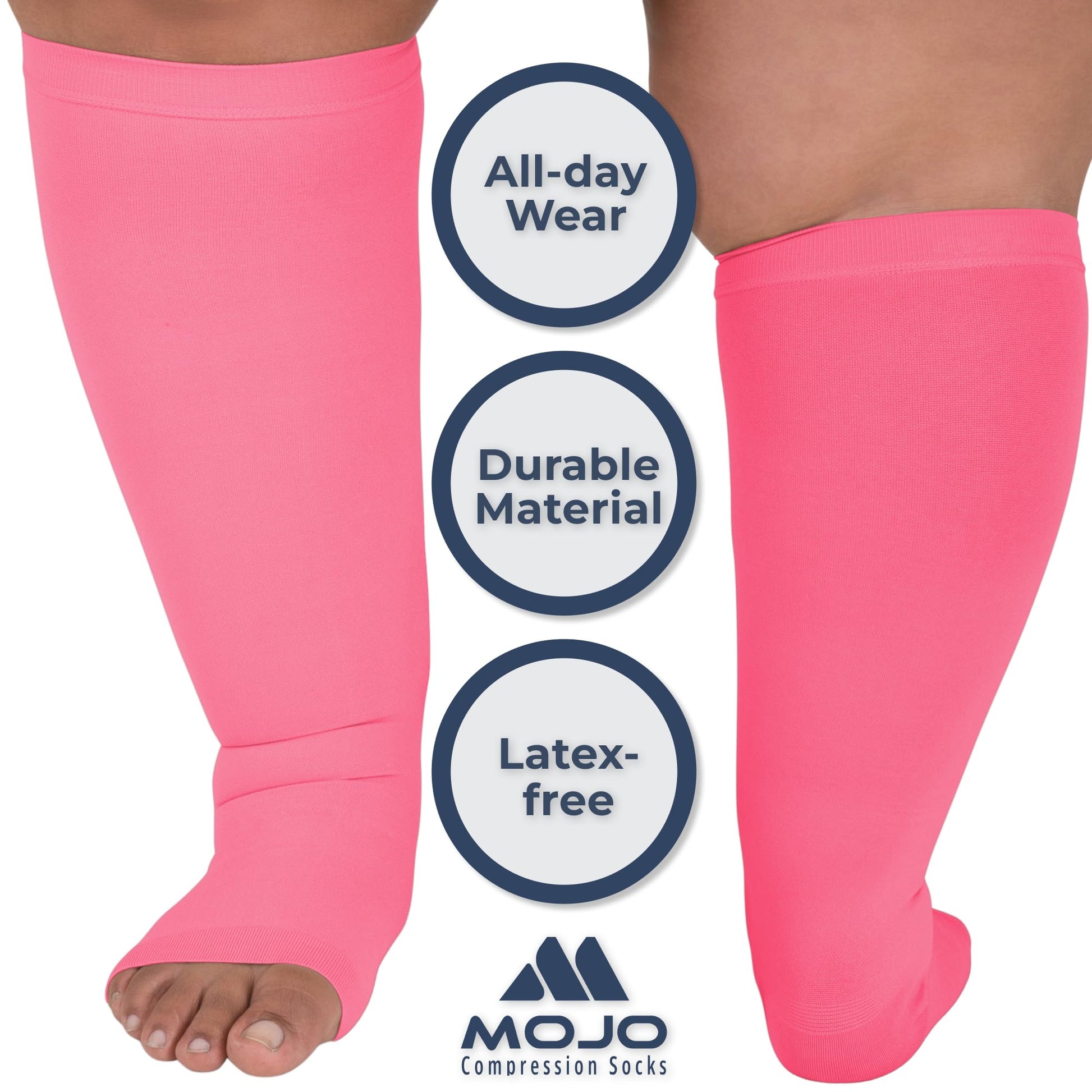 Mojo Compression Socks – Unisex Open Toe Compression Stockings for Varicose Veins & Swelling Relief – Knee High – 20-30mmHg Firm Support – AB211