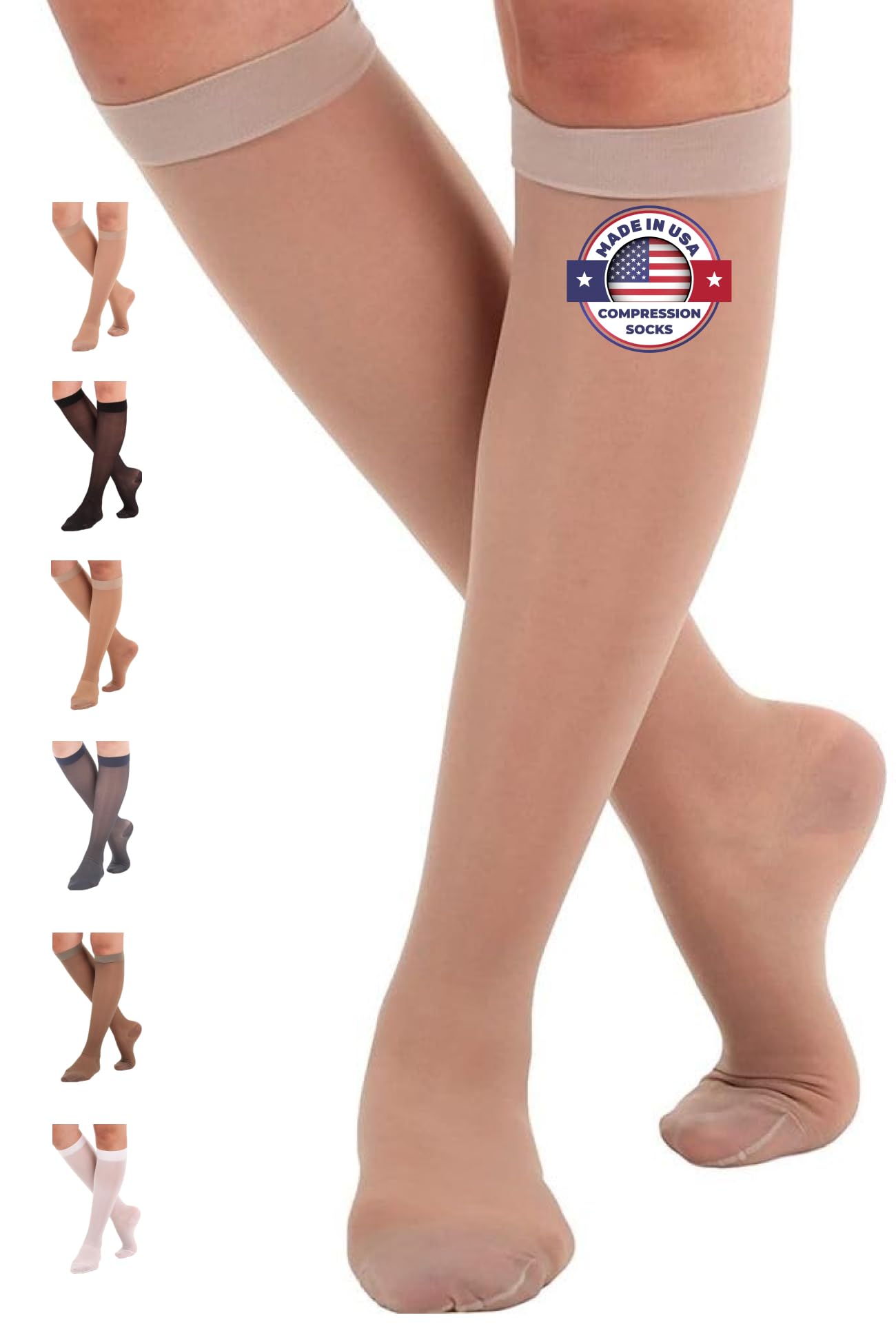 Made in USA - Women's 15-20mmHg Sheer Compression Socks - A101