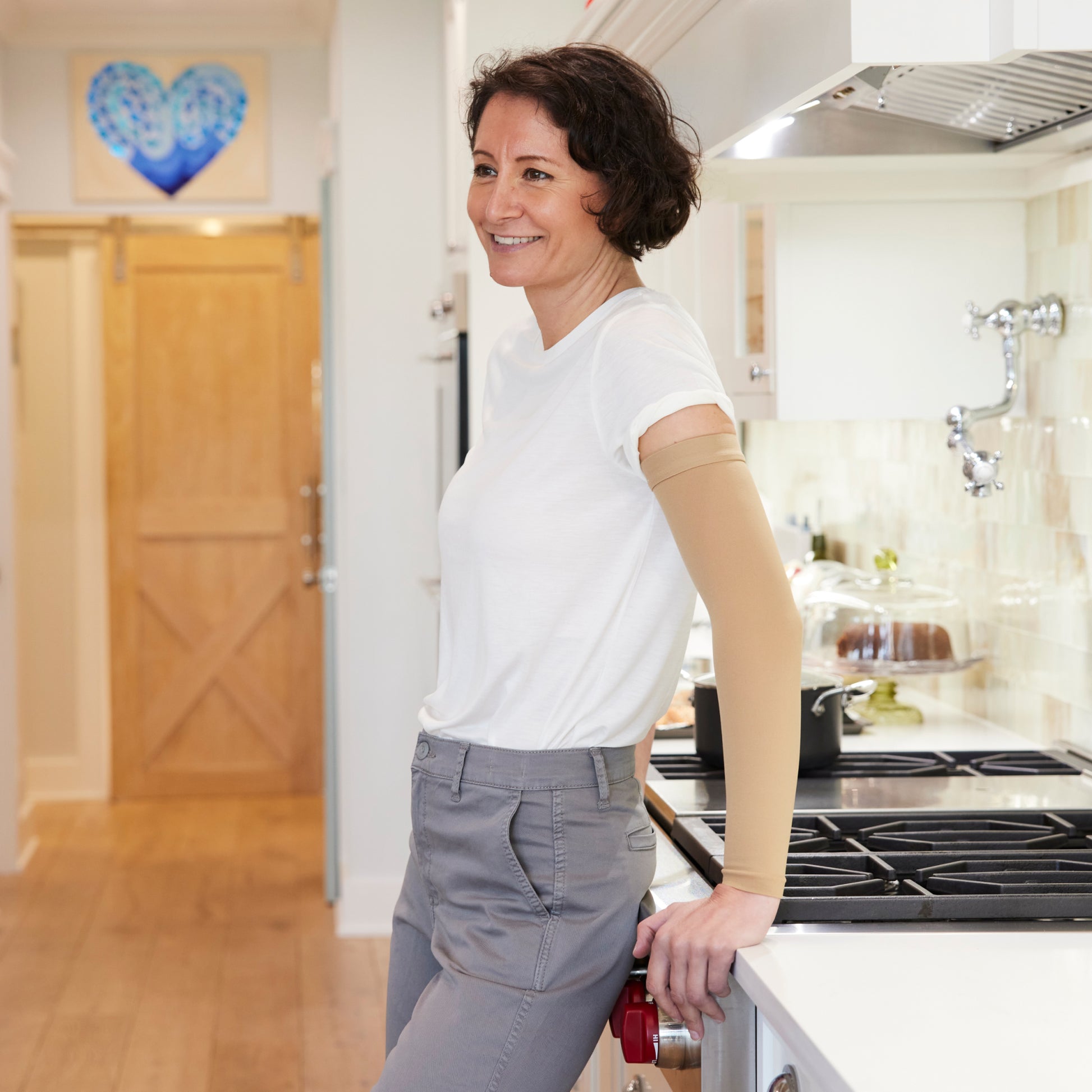 - Built in 1.5 inch soft, silicone top band prevents rolling and provides superior comfort for all-day wear. Wear a compression garment when exercising the affected limb to help with edema swelling, cellulitis moderate to heavy, arm pain, arthritis, tendonitis and post surgery.